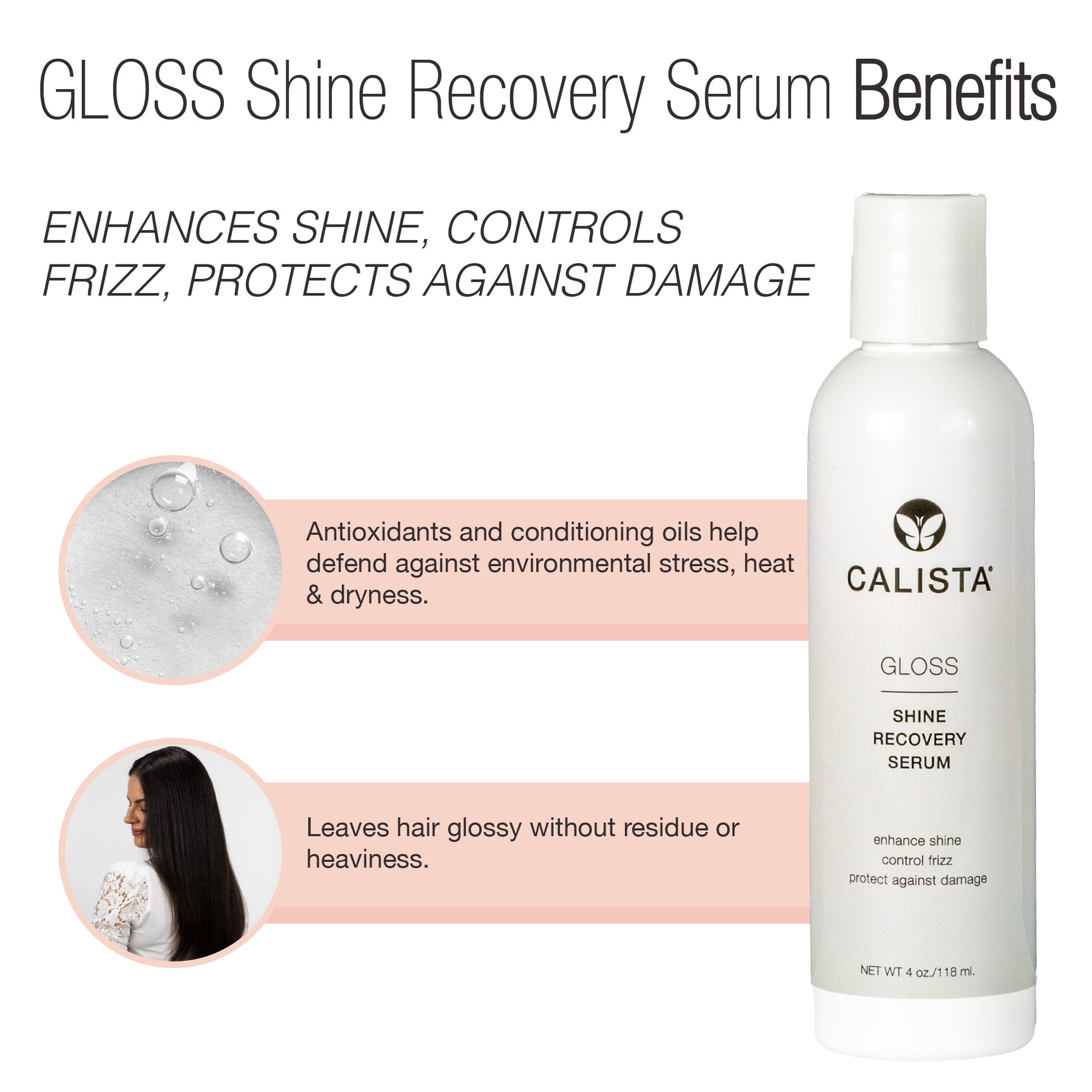 Nourish, protect, and smooth hair with GLOSS Shine Recovery Serum. Created with Argan oil and Vitamin E, this lightweight serum absorbs into hair, eliminating frizz and boosting moisture for a healthy, high-shine finish.